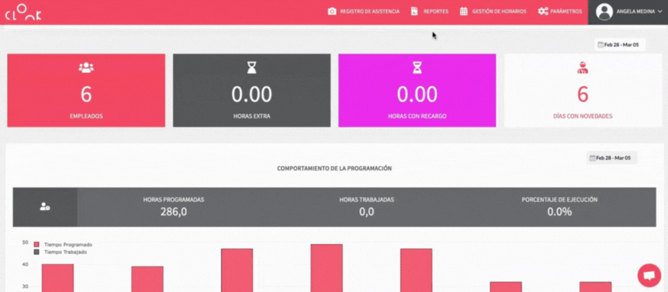 El reporte de horas es una de las funcionalidades más importantes para automatizar al máximo la liquidación de novedades para tu nómina. Además te permite visualizar rápidamente la asistencia y puntualidad de las personas, detectar errores con la desviación entre duración de un turno programado y el tiempo que trabajó un empleado realmente, y llevar la cuenta de las horas trabajadas que se acumulan en una semana.