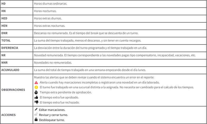 Recomendación: A medida que vas revisando y/o completando marcaciones, puedes ir cerrando los turnos también.