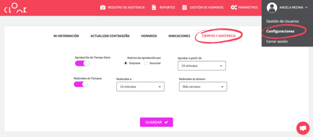 Redondeo de tiempos: De manera predeterminada, Clonk calcula los tiempos trabajados y horas extras según el minuto exacto en que se registró en el sistema, pero es muy común que en las empresas se realicen redondeos de tiempo para facilitar los procesos de nómina.