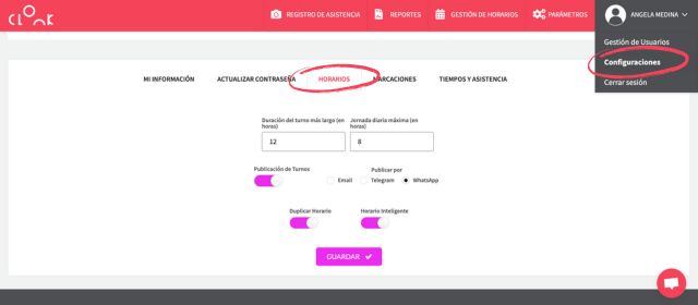 Whatsapp: Las personas deben tener registrado su número celular en el perfil de empleado para poder enviarles sus horarios por este canal.