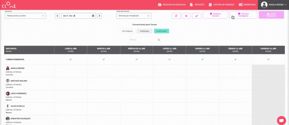 El horario inteligente es una poderosa herramienta que utiliza métricas de tu empresa, los requerimientos de cada una de las sedes y la disponibilidad del personal, para construir la mejor programación de turnos posible por medio de inteligencia artificial.