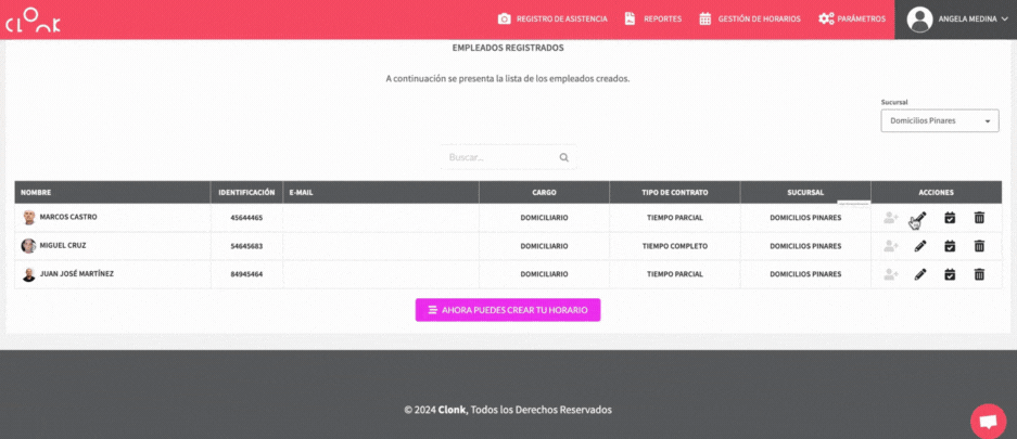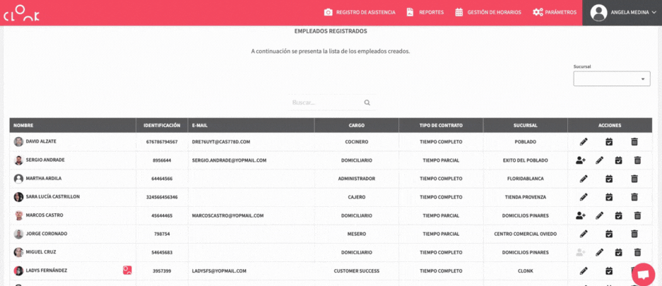 Crea el empleado al que le vas a enviar la invitación o búscalo en la lista de los empleados que ya tienes creados. Recuerda que es necesario que el empleado tenga una foto registrada en su perfil, de lo contrario el sistema no puede validar su identidad ni registrar sus tiempos de trabajo.