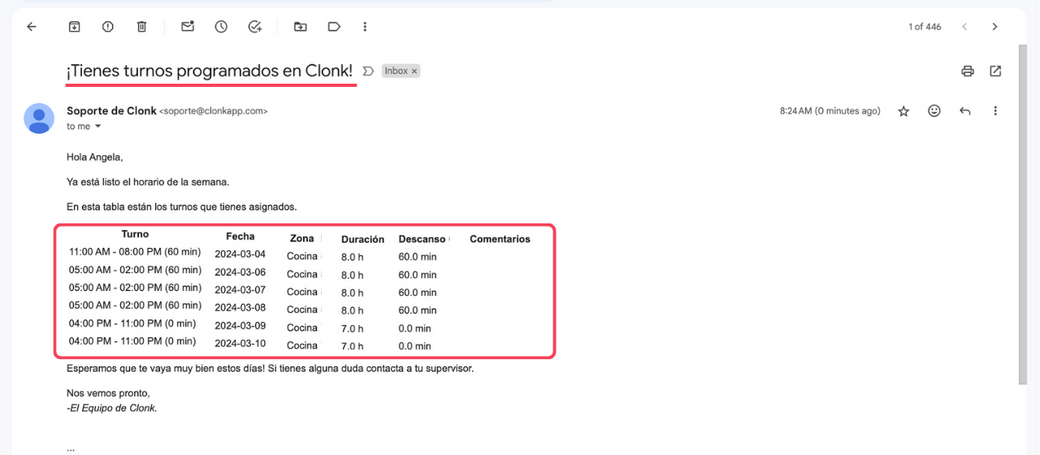 Esta opción también está disponible para todos los planes en Clonk, y permite la opción al empleado de confirmar los turnos recibidos.