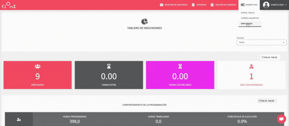 Este servicio está incluido en todos los planes o tipos de suscripción en Clonk. Solo necesitas agregar la dirección de correo electrónico de cada uno de tus empleados, entrando a editar su perfil en el menú de configuraciones de la empresa: Parámetros > Empleados: